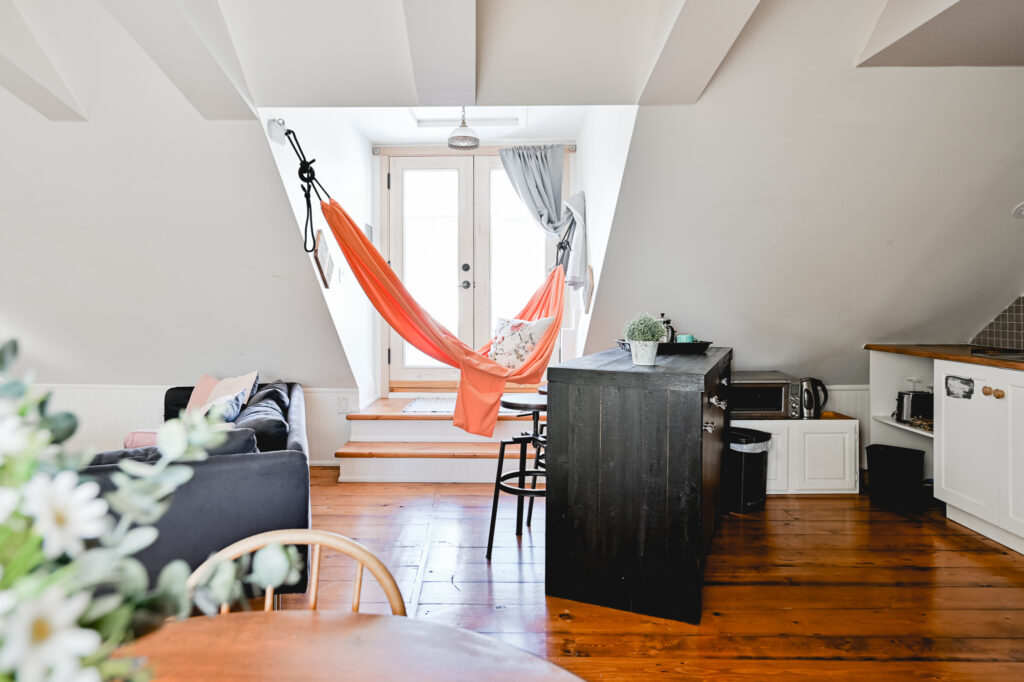 Au cœur de l’Auberge du QG, la Cappuccino est un espace idéal pour une famille de trois, un couple ou des amis.